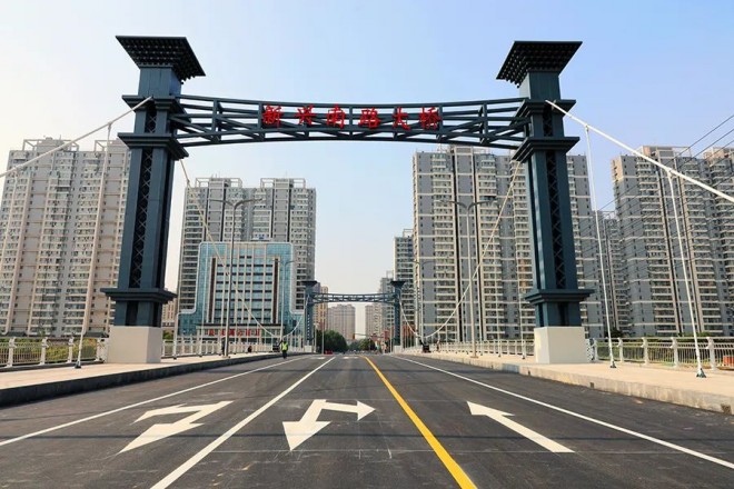 據了解,2024年5月,新興南路大橋及附屬設施建設項目正式拉開帷幕。城建集團權屬企業城建開發公司勇擔國企使命,積極推進工程建設。如今,大橋主橋140.08 米的橋身橫跨碧波蕩漾的荊河,氣勢如虹;26米寬的橋面科學規劃,確保車輛和行人暢通;懸索橋主塔采用魯班文化元素,“東方之冠” 融合傳統底蘊與現代美感,成為城市新地標。
