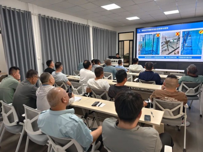 培訓首先圍繞施工現場常見的安全隱患展開學習,進一步提升了參訓人員安全意識與業務知識水平。隨后,安全科對近期在各級檢查中發現的安全隱患進行全面總結與梳理。通過對照相關規范,深入學習標準做法,系統分析隱患產生的根源。最后,與會人員對《附著式升降腳手架安全使用與管理》進行深入學習。