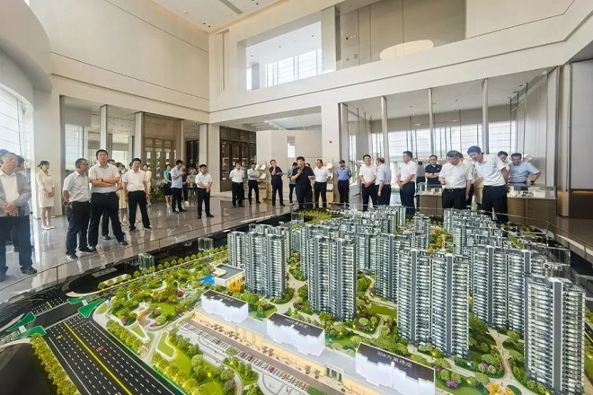 考察團一行到梁庭春曉項目回遷區域及高品質展示區進行實地查看。馬培安局長匯報了我市高品質住宅推進工作整體情況??疾靾F以沉浸式觀摩方式,與項目建設單位深入交流了高品質住宅推進建設中的理念和做法,并對我市高品質建設項目給予高度評價。