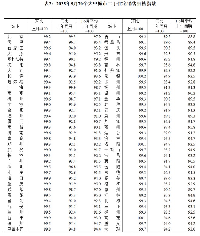 二手住宅價格方面,和新房一樣,5月份上漲的城市數量有所波動。國家統計局數據顯示,5月份環比上漲城市有3個,比上月減少2個;同比上漲城市為0,與上月一致。