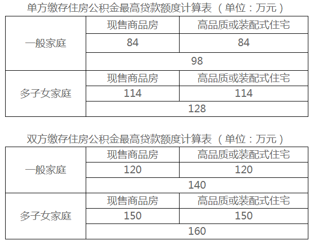 (一)提高多子女家庭貸款額度。符合國家生育政策生育或撫養兩個及以上子女,其中至少含有一名未成年子女的家庭。其中,二孩家庭是指夫妻2016年1月1日(含)以后生育二孩的家庭;三孩家庭是指夫妻2021年5月31日(含)以后生育三孩的家庭。離異、再婚家庭,子女個數計入擁有撫養權的一方;依法收養的子女計入家庭子女個數。成年子女已婚的,且在全國范圍內辦理公積金貸款的子女不計入。在我市購買自住住房,使用住房公積金貸款的,最高貸款額度在定期最高貸款限額的基礎由原來的提高20萬元增加到提高30萬元。