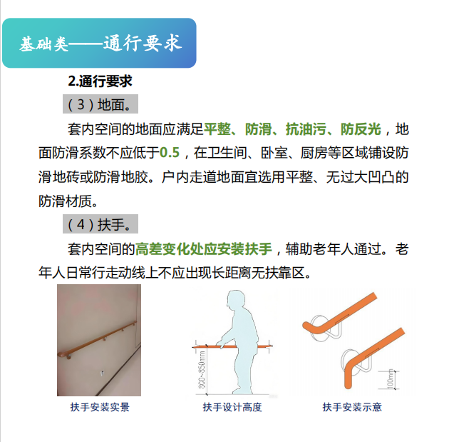 《導引》立足我省實際,系統整合了《山東省城鎮老舊小區適老化改造指南》《既有住宅適老化改造技術標準》等多項技術規范,聚焦既有住宅套內空間、公共空間、小區環境等方面適老化改造需求,以“系統化、標準化、可操作”為原則,為居民自主更新改造既有住宅提供科學、實用的技術指導。