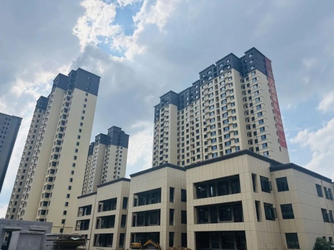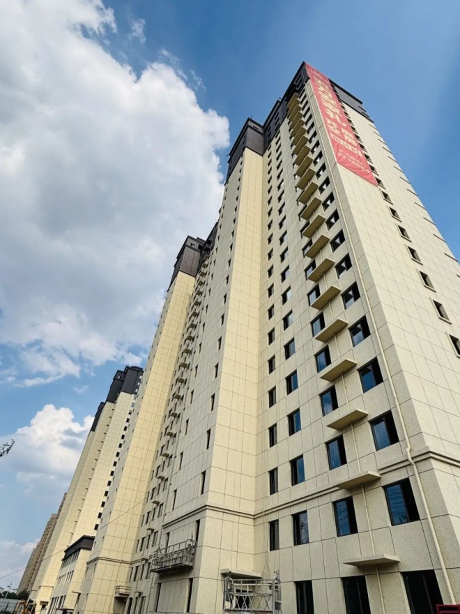 6#樓窗戶安裝完成,內外墻砌筑施工完成,內墻抹灰完成,屋面工程施工完成,外墻抹灰施工完成,外立面施工完成,室內消防完成90%。