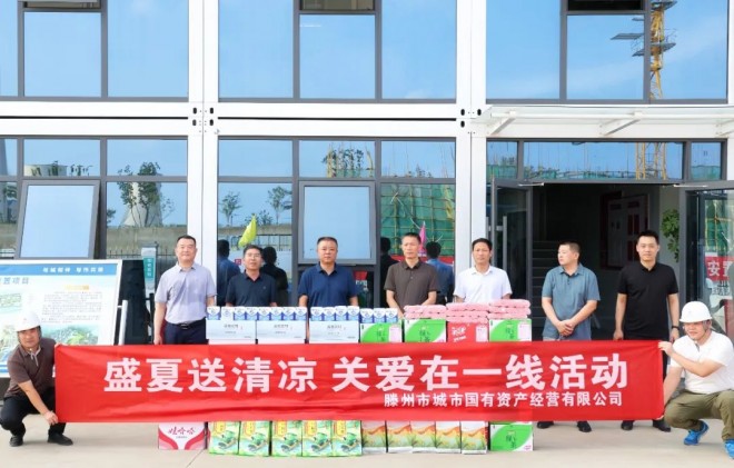 為切實保障高溫環境下一線職工身心健康,傳遞組織深切關懷,7月9日,市國資公司黨委書記、董事長李魯峰,黨委副書記、總經理孫士偉,黨委委員、副總經理、工會主席錢進及相關負責同志深入權屬單位及在建項目一線開展“盛夏送清涼、關愛在一線”專項慰問活動。