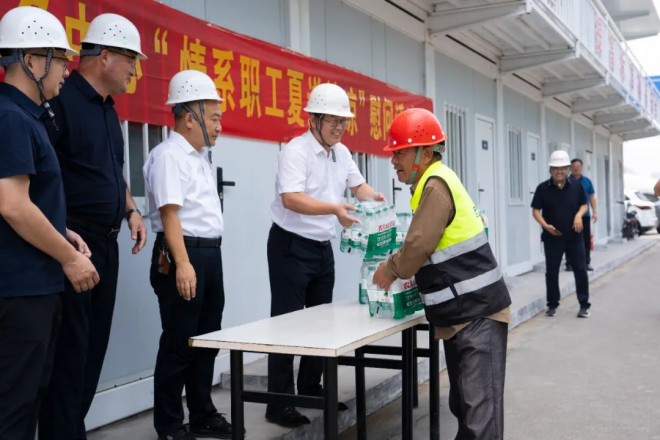 活動中,慰問組詳細了解項目部高溫作業安排及項目建設情況,并為工人們送上防暑物資,叮囑他們注意勞逸結合,謹防中暑。該公司負責人對住建局的高溫慰問深表感謝。他表示,公司十分重視高溫季節的施工安全,項目部已制定了科學的防暑應急方案,通過合理調整作業時間、配備防暑藥品、保障清涼飲品供應、加強安全巡查等措施,切實保障一線工人安全。