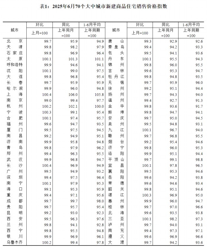 根據國家統計局數據,2025年6月份70個大中城市中新建商品住宅環比上漲城市有14個,比上月增加1個;同比上漲城市3個,與上月持平。