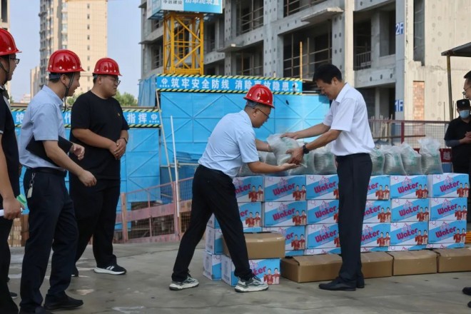 慰問組一行先后赴中房·文昌里、信華·啟元、和暢園、龍湖月色鄉村振興示范區等項目現場,為一線職工送去礦泉水、綠豆、菊花茶等防暑降溫物品,叮囑大家高溫作業做好防暑降溫,注意勞逸結合,確保自身健康和安全生產。