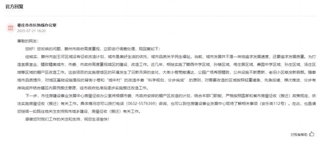 您好!您反映的問題,滕州市政府高度重視,立即進行調查處理,現回復如下: