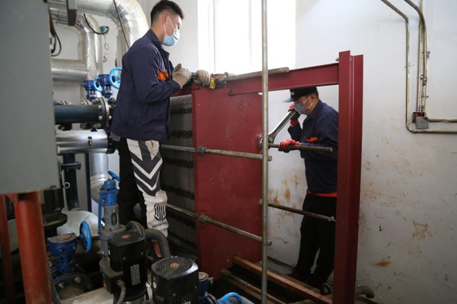為確保冬季供暖系統高效運行,公司充分利用停暖檢修黃金期,組織專業技術人員對供熱管網、換熱站等關鍵設備進行全面“體檢”。重點篩查維護上一采暖季運行中暴露出的問題,建立問題清單,制定整改方案,確保隱患全部處理完畢。高效完成122臺板式換熱器深度清洗、360臺水泵系統維護保養,維護供熱管網120余公里,更換老舊閥門、管道等設備1300余處。