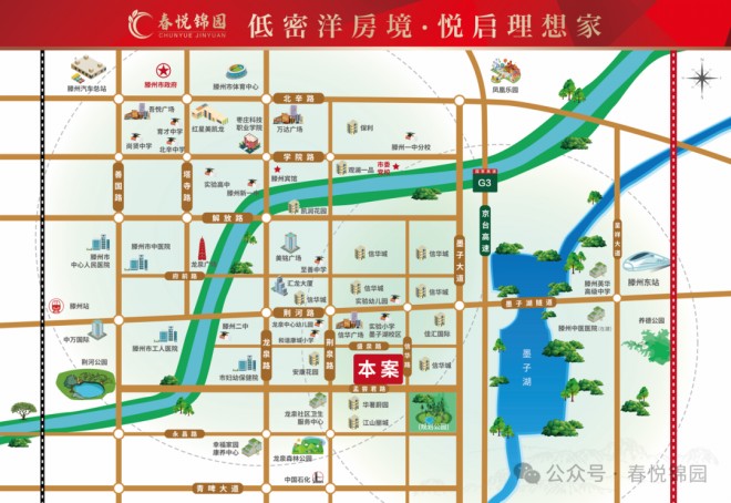 學府環繞:實驗小學墨子湖校區、至善中學、滕州一中、滕州二中等名校環繞,完美構筑起一站式全齡段教育體系。