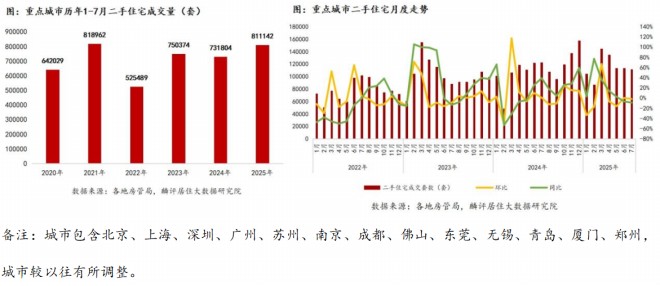 麟評居住大數據研究院數據顯示,7月監測重點14城二手住宅成交111773套,環比下降1.83%,同比下降9.05%。
