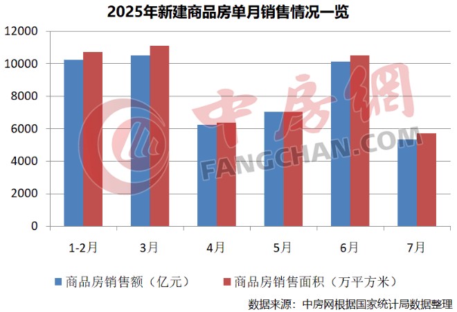 根據國家統計局數據,1-7月份,新建商品房銷售面積51560萬平方米,同比下降4.0%;其中住宅銷售面積下降4.1%。新建商品房銷售額49566億元,下降6.5%;其中住宅銷售額下降6.2%。