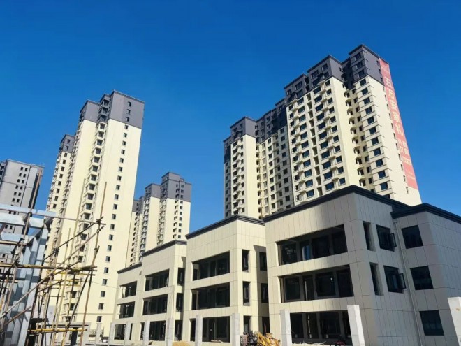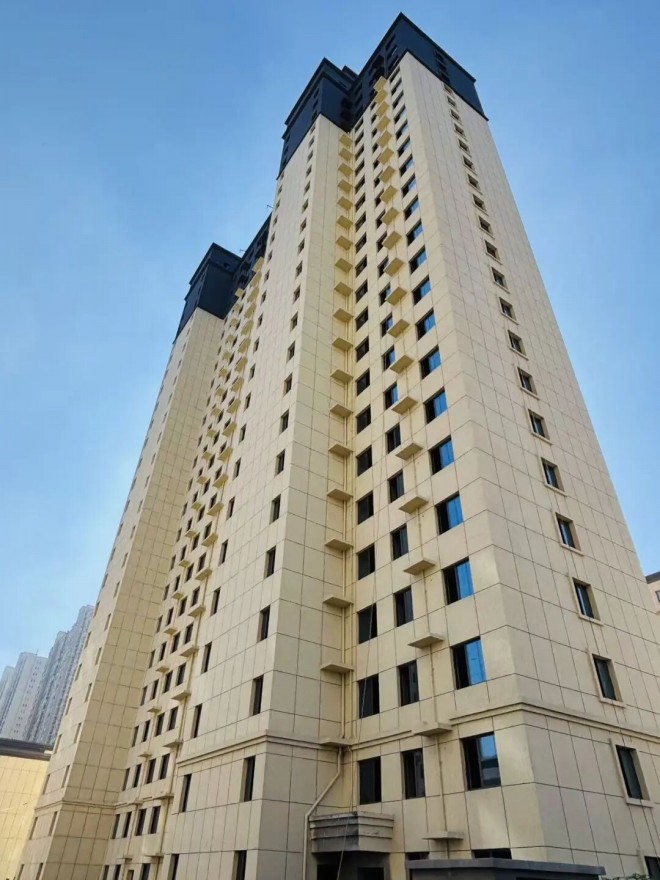 4#、5#、6#、7#,內外墻砌筑施工完成,內墻抹灰完成,屋面工程施工完成,外墻抹灰施工完成,窗戶安裝完成,外立面施工完成,室內消防完成95%。