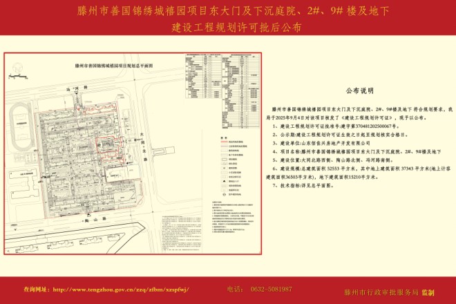 禧園項目東大門及下沉庭院、2#、9#樓及地下建設工程規劃許可批后公布