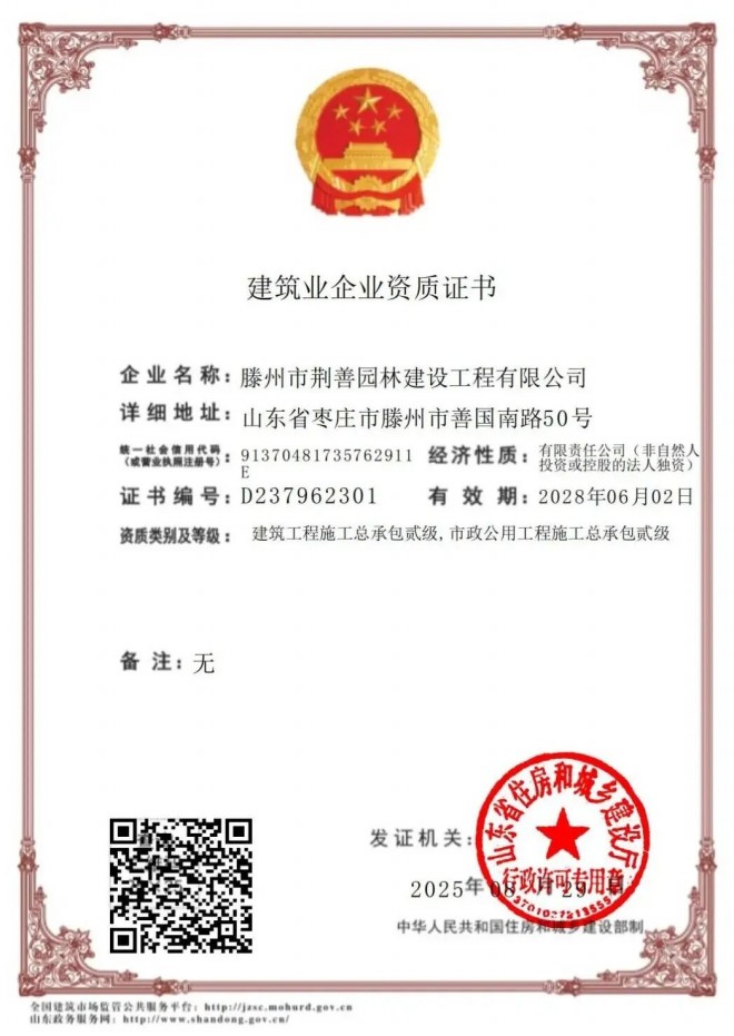 近日,經山東省住房和城鄉建設廳審核批準,城發集團園林公司成功增項建筑工程施工總承包貳級資質,這是繼市政公用工程施工總承包貳級資質后,公司再次拓寬專業資質領域,為城發集團提高市場競爭能力、拓展產業領域、擴大市場份額創造有利條件。