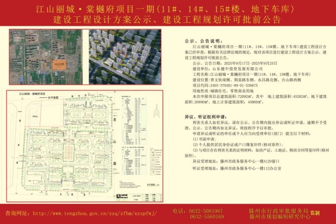 江山麗城·棠樾府項目一期(11#、14#、15#樓、地下車庫)建設工程設計方案公示、建設工程規劃許可批前公告