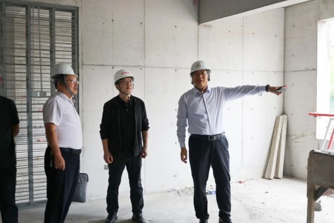 在項目施工現場,孫卓安董事長實地察看項目建設進展和安全生產管理情況,聽取項目負責人關于整體工程進度及重難點問題的匯報,并對安全生產工作的再部署、再落實。他強調,安全生產是集團高質量發展的重要組成部分,要切實強化風險防控,牢固樹立精品意識,在嚴把安全質量關的基礎上,高標準推進項目整體進度。