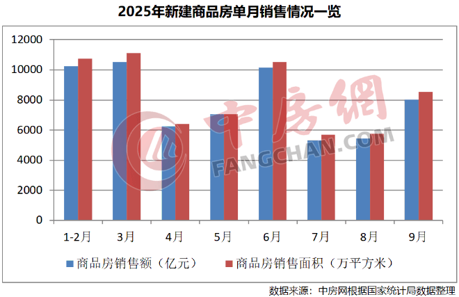 根據國家統計局數據,1-9月份新建商品房銷售面積65835萬平方米,同比下降5.5%;其中住宅銷售面積下降5.6%。新建商品房銷售額63040億元,下降7.9%;其中住宅銷售額下降7.6%。
