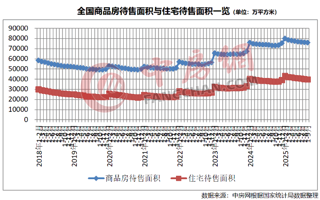 商品房庫存方面,連續7個月減少。截至9月末,商品房待售面積75928萬平方米,比8月末減少241萬平方米。其中,住宅待售面積39937萬平方米,減少292萬平方米。