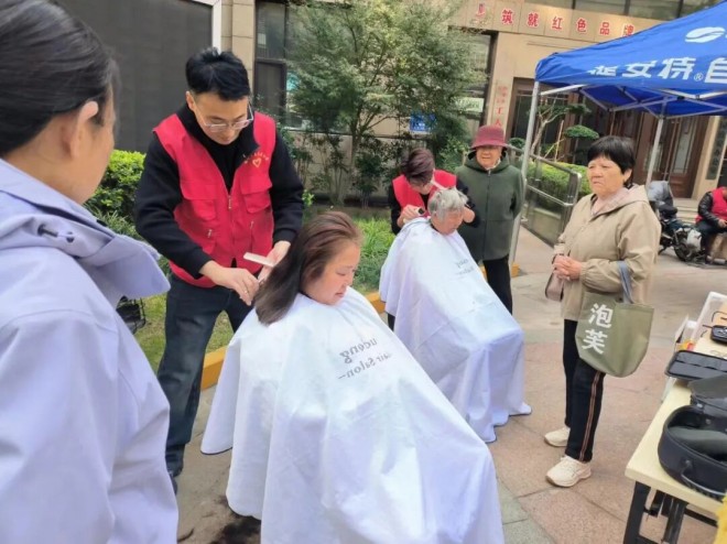 活動邀請專業發型師為小區內老人免費理發剪。經過細致修剪后,老人們精神面貌也煥然一新,臉上洋溢著滿意的笑容。