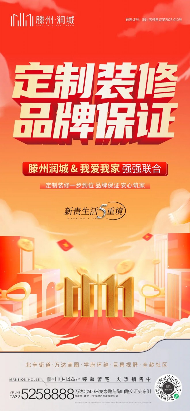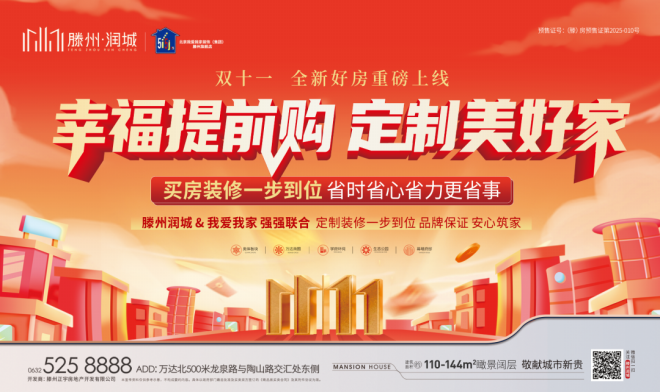 還在為交房后的裝修奔波頭疼?滕州潤城顛覆傳統,聯合品牌裝企:我愛我家,重磅推出「幸福提前購」定制化品質裝修房源,為你實現從買房到入住的完美銜接,定制你的理想家!