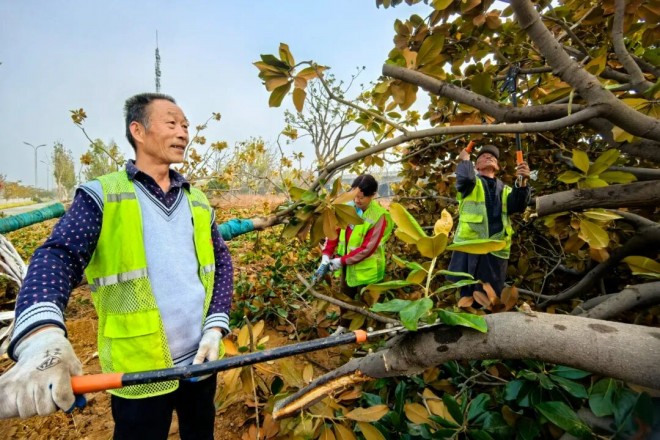 10月31日,園林工人在墨子大道、東城公園等區域開展苗木移栽工作。本次移栽的苗木全部來自善國路原綠化隔離帶,包括廣玉蘭96株,紫葉李、紫薇、櫻花等花灌木共計193株,冬青球體169株。