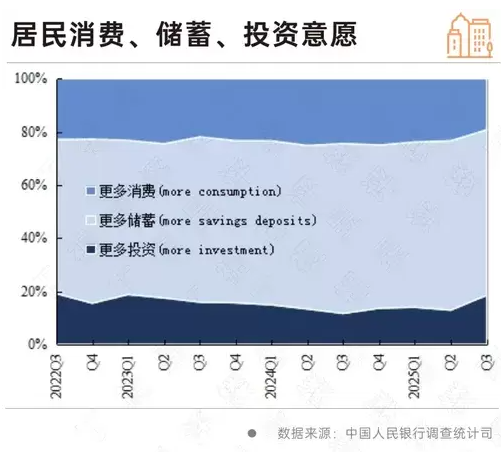 《城鎮儲戶問卷調查報告》顯示,2025年第三季度,傾向于“更多消費”的居民占19.2%,比上季低4.1個百分點;傾向于“更多儲蓄”的居民占62.3%,比上季低1.5個百分點;而傾向于“更多投資”的居民占18.5%,比上季高5.6個百分點,且明顯高于近兩年水平。