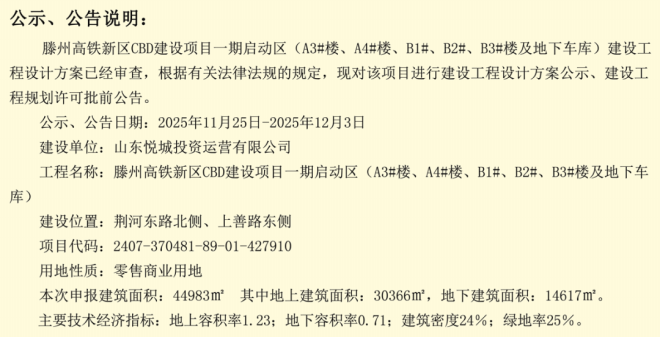 滕州高鐵新區CBD建設項目一期啟動區(A3#樓、A4#樓、B1#、B2#、B3#樓及地下車庫)