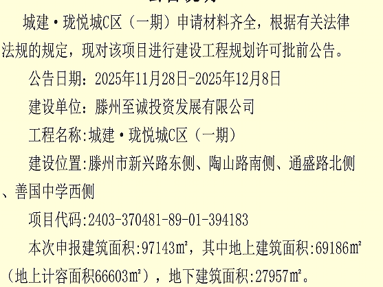 城建·瓏悅城C區建設工程設計方案公示、城建·瓏悅城C區(一期)建設工程規劃許可批前公告