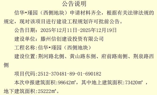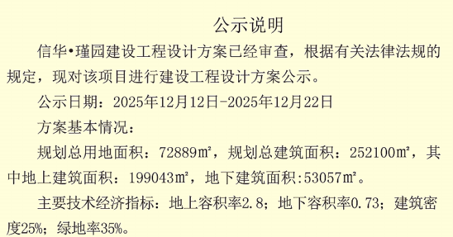 信華·瑾園建設工程設計方案公示,信華·瑾園(西側地塊)建設工程規劃許可批前公告