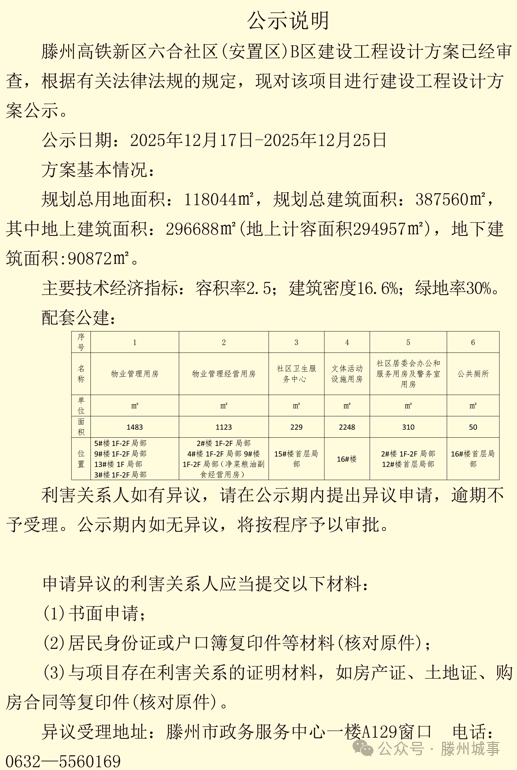 滕州高鐵新區六合社區(安置區 )B 區建設工程設計方案公示