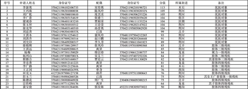 根據《滕州市人民政府辦公室關于辦理第二批廉租住房實物配租的通知》(滕政辦發[2011]139號)要求,經過市住房保障和民政部門的共同審核,共有以下164戶家庭初步具備廉租住房實物配租資格,分為以下兩組: