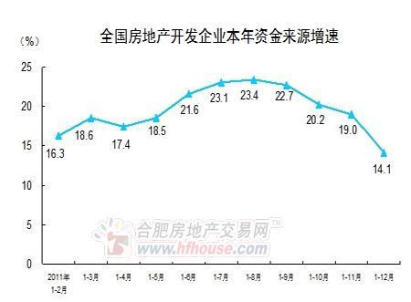 2011年,房地產開發企業本年資金來源83246億元,比上年增長14.1%,增速比上年回落12.1個百分點,比1-11月回落4.9個百分點。其中,國內貸款12564億元,與2010年持平;利用外資814億元,增長2.9%;自籌資金34093億元,增長28.0%;其他資金35775億元,增長8.6%。在其他資金中,定金及預收款21610億元,增長12.1%;個人按揭貸款8360億元,下降12.2%。
