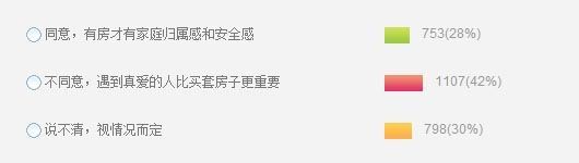 另有30%的網友選擇“說不清,視情況而定”表明在當前現實社會中,人們對“婚姻與房子”這一對敏感話題取向的搖擺不定。