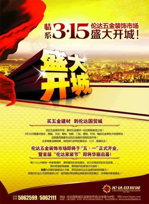 倫達五金裝飾市場將于3.15日盛大開業,暨首屆“倫達家裝節”即將華麗啟幕!