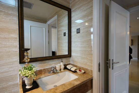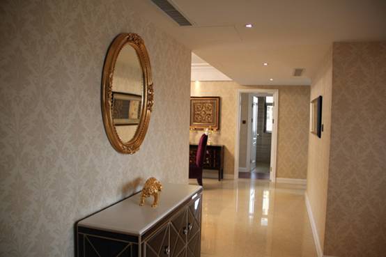 入口大堂的地面以法恩莎高級地磚裝飾,墻面使用法恩莎高級墻磚,天花板造型吊頂,尊貴奢華,干凈中帶著點點安寧。電梯前廳地面也是以法恩莎高級地磚,墻面使用法恩莎高級墻磚,局部墻面使用溫馨浪漫的鏤花式壁紙。清新高雅,簡歐式風格發揮的淋漓盡致,天花板造型吊頂人遐想連篇,如夢似幻,這才是家的感覺。