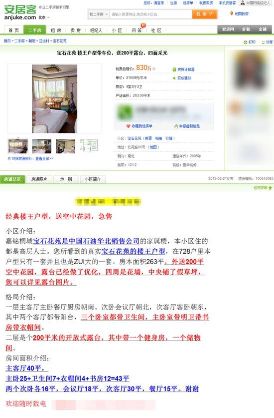 2月19日環球網報道《中石油員工:每平米8170元買房,42927元賣》的文章后,有多名網友爆料位于北京市朝陽區北苑路的寶石花苑的購買方為中石油華北銷售分公司,該樓盤也存在部分中石油領導出售二手房獲取利益的情況。其中唯一一套樓王戶型在稅費自理的情況下標價達830萬。