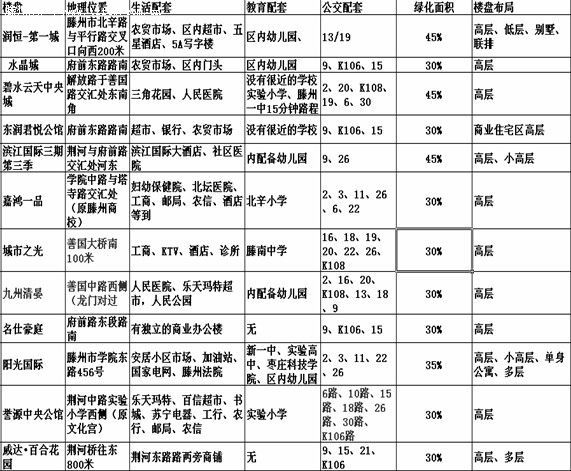 其實,滕滕認為,買房是一件很慎重的事情,價格固然重要,但是如果只參考價格未免太過草率,生活配套、教育配套、公交配套、綠化面積、樓盤整體布局,戶型這些問題都要有一個綜合的參考,然后再對比價格,量力而行就可以買到你稱心如意的住宅。下面的表格是滕滕統計出來的部分參考數據,大家不妨看一下,具體的還請查看滕滕看房日記。