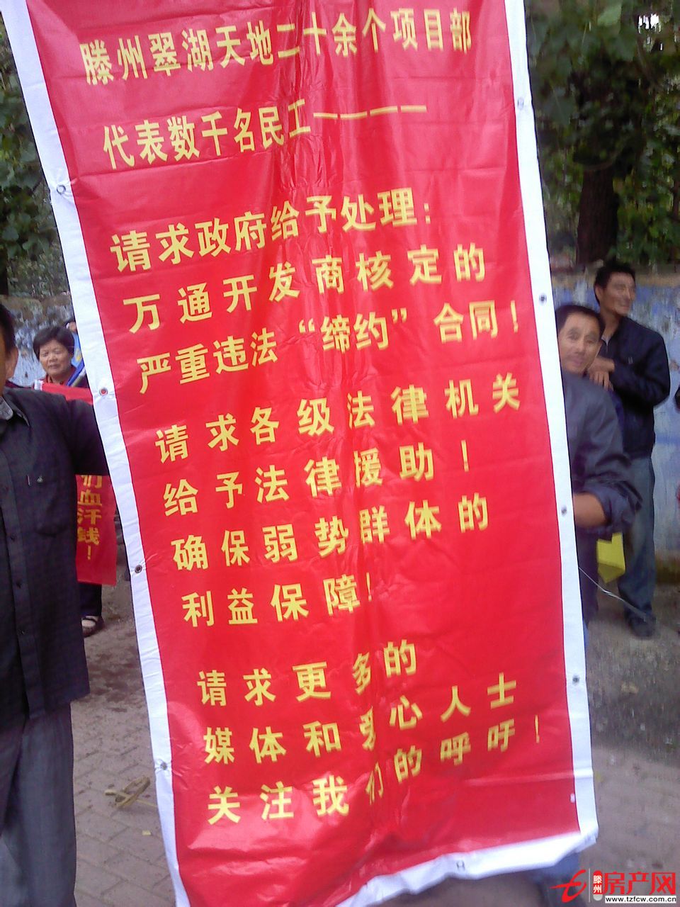 據了解滕州萬通開發公司拖欠農民工工資達到數千萬元,涉及農民工人數達3000多人??梢韵胂筮@一個樓盤項目從開工到結束這些農民工付諸心血的工作,到頭來卻換來昧心開發商的玩弄,一家人的開支付之東流。