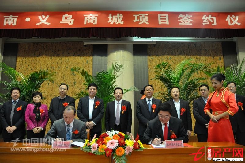 市委書記董沂峰在簽約儀式上講話,代表市委、市政府對項目成功簽約表示祝賀。他在簡要介紹了今年我市實施商貿物流業發展的思路后說,魯南·義烏商城項目的簽約,是我市經濟社會發展中的一件大事、喜事,對于改善西城區城市面貌、提升檔次,進一步做大做強我市商貿物流業、提高服務業發展水平意義重大、影響深遠,是歷屆黨政始終關注、廣大群眾期盼的重點項目。該項目的實施,得到了義烏市黨委、政府的高度支持,體現了義烏市親商、愛商的濃厚氛圍,值得滕州市學習和借鑒。今天項目正式簽約,標志著這個項目進入了嶄新的發展階段。下一步,滕州市委、市政府將把這個項目作為全市的重大項目,高看一眼、厚愛一層,把投資企業當做滕州自己的企業,全力以赴提供最優良的環境,確保項目順利實施。各級各相關部門和鎮街要提高思想認識,增強做好項目的責任感和使命感,齊心協力推動項目建設,全面建設幸福滕州。