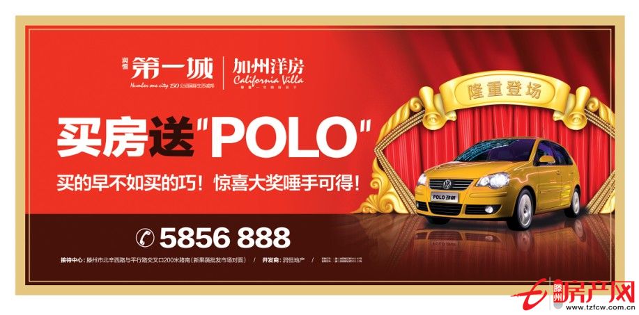 作為2013年潤恒第一城推出的青年置業計劃之“買房送polo“,簽約購買即可參與抽獎。每80組客戶,潤恒第一城即會送出一臺大眾POLO,還有其他驚喜大禮等你挖掘,100%中獎,100%驚喜。讓你房車兼備,一步到位。