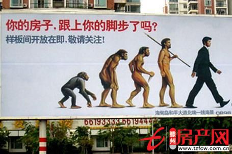 ??诤5閸u某樓盤廣告內容與人類進化掛鉤,看到該廣告的市民都覺得受了莫大的侮辱,認為該廣告有辱公民道德風尚,要求相關部門依法取締并查處。網友直指該廣告低俗,質問:“海口那么多打工者都沒有房子,難道買得起房子的人就是人,買不起房子就是猿?”
