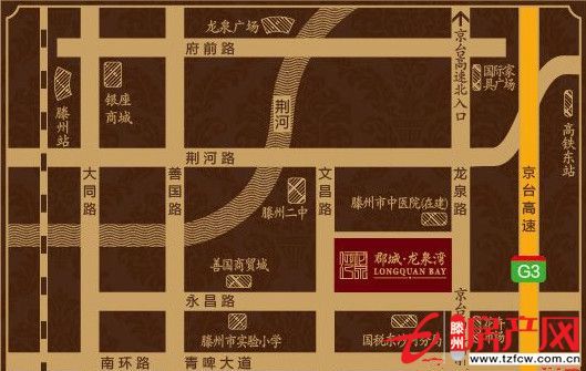 郡城·龍泉灣——開發商:滕州中豪房產,發展商:浙江郡城發展。項目精英團隊集15年20個樓盤的開發經驗,為滕州精英階層打造一個品質、生態、人文的典雅住區。優居龍泉路西側,永昌路北側。南北直連京臺高速,駕車5分鐘直達市中心,15分鐘可達滕州高鐵東站。多路公交均能直達市中心,審批中的新城的BRT(快速公交)亦將途徑本項目,出則繁華盡攬,入則靜謐獨享。