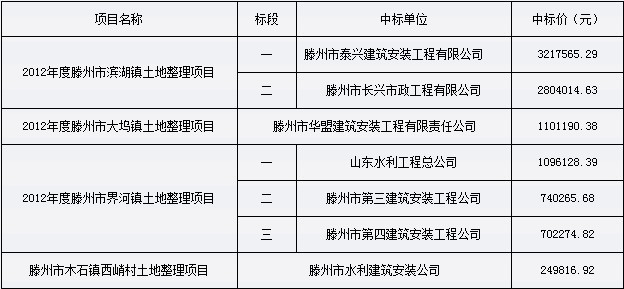 三、招標項目名稱:2012年度滕州市土地整理項目