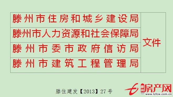 為全面貫徹《中華人民共和國勞動合同法》和《建設領域農民工工資支付管理暫行辦法》,保證農民工工資按時足額發放,維護農民工合法權益,維護社會和諧穩定,根據省住建廳、省人社廳、省信訪局《關于開展全省建筑農民工工資支付情況專項督導檢查的通知》要求 ,滕州市住房城鄉建設局、市人力資源社會保障局、市信訪局、市建筑工程管理局決定,8月下旬至9月上旬開展滕州建筑農民工工資支付情況專項檢查?,F就有關事項通知如下: