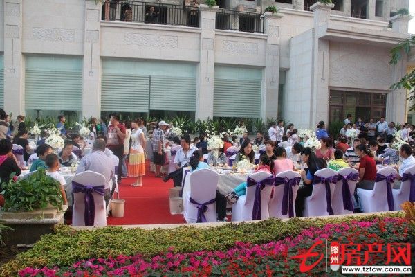 2013年9月13日下午,滕商·奧體花園售樓處開放大型西式宴會隆重舉行,現場二百余位客戶在品嘗佳肴的同時還欣賞了精彩的節目,特別是熱氣球的空中漫步成為了焦點。10名幸運客戶分獲一二三等獎,海爾電冰箱,SKG榨汁機和新飛電熱水壺被收入囊中!
