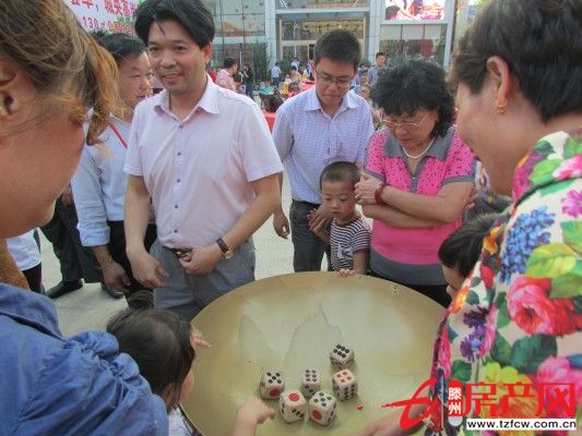 恰逢周末,許多客戶都是帶著孩子來領略閩南風情,共同體驗南方的風俗活動。游戲規則通過六粒骰子投擲結果組合來決定參與者的獎品,從低到高依次為秀才、舉人、進士、探花、榜眼、狀元,只有博出的狀元才能最終角逐王中王大獎!由于獎品眾多,現場氣氛緊張熱烈,許多客戶都是激情吶喊,振臂高呼希望自己的骰子能排列出最佳組合。