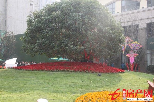 涵翠苑為盛大開放當日的活動做了精心的準備,外面的白樺樹都裹起了喜慶的紅綢,枝頭也掛起了紅燈籠和風箏,細致入微的裝扮讓到場的客戶贊不絕口。更讓人大開眼界的是種在營銷中心外的一株百年桂花樹,其枝繁葉茂、香氣四溢,有兩層樓高,樹冠大而多葉,十分醒目,有“魯南第一桂”的美譽。桂樹底部輔之以鮮花碧草,不僅香氣沁人,視覺效果之大美也讓看客直呼“不虛此行”。