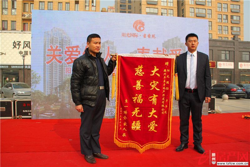 本次活動得到了省內各電視臺的關注,袁一博的父親出席了義捐活動,答謝愛心人士的關愛,并向豐盈地產送上錦旗——“大災有大愛,慈善福無疆”。