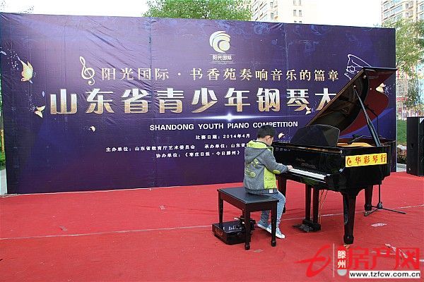 由山東省教育廳藝術委員會主辦、山東省音樂家協會鋼琴專業委員會、山東華彩琴行承辦的2014山東省青少年鋼琴大賽于4月6日在陽光國際·書香苑開賽!大賽棗莊賽區由滕州華彩琴行承辦,滕州陽光國際·書香苑協辦。山東省青少年學生鋼琴大賽棗莊賽區初賽定于:2014年4月6日早9點在滕州陽光國際·書香苑開賽!決賽時間定于:2014年4月19日在陽光國際·書香苑舉行!將于2014年4月26,27日青島大學音樂廳參加總決賽!